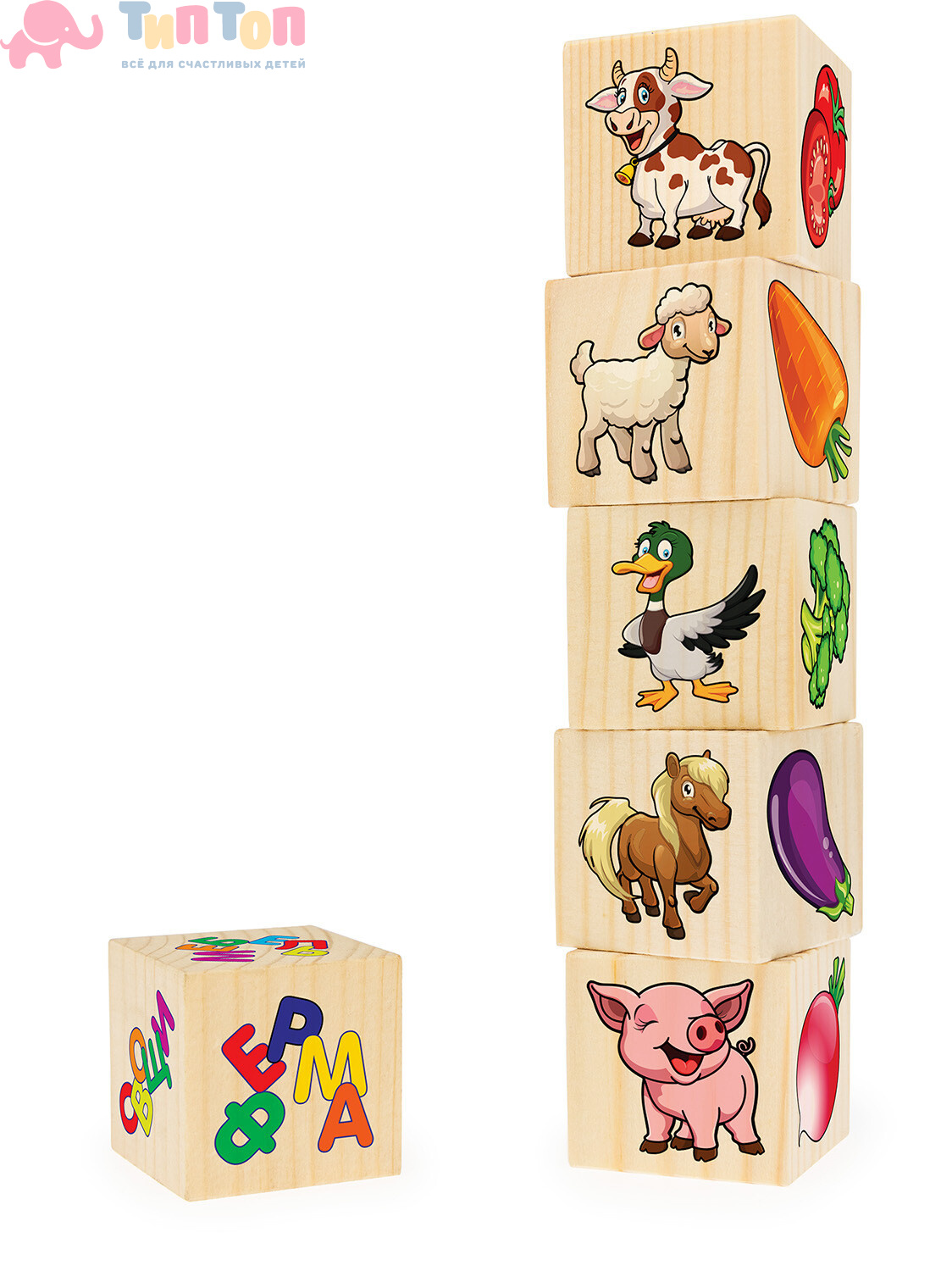 Для кубиков серии "Развивающие деревянные игрушки" мы взяли только натуральное отечественное дерево мягких пород и провели минимум обработки, что позволило максимально сохранить ощущение фактуры дерева и его аромата. Яркие, контрастные и понятные ребенку иллюстрации нанесены экологичными красками.
