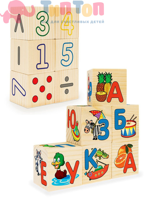 Кубики вот уже несколько столетий остаются неизменными спутниками детей во всем мире. Как развивающие игрушки для детей, они интересны в любом возрасте. Обязательно познакомьте своего ребенка с ними, покажите, как строить простые строения, стимулируйте продолжение игры, вовлекайте в неё другие любимые игрушки, придумывайте во время игры интересные сюжеты. Кубики из дерева - казалось бы, что может быть проще, но как много интересных занятий можно придумать с ними! Ребенок может построить домик или пирамидку, а также познакомится с иллюстрированными буквами русского алфавита, с цифрами от 0 до 9 и математическими знаками. Игра с кубиками поможет научиться считать, решать простейшие примеры по сложению и вычитанию. Дети, играя с кубиками, развивают ловкость рук, мелкую моторику, координацию, образное мышление, воображение и фантазию.