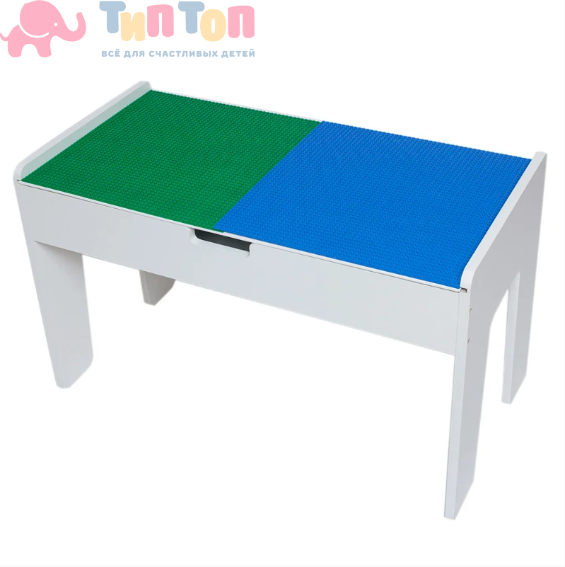 Крышка может быть выдвижной двусторонней - с одной стороны Лего полотно, с другой гладкая поверхность для игр и занятий ИЛИ выдвижной ящик (в этом случае крышка стационарная)