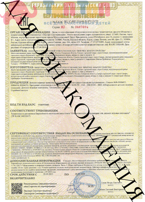 В целях безопасности все отдельно выступающие детали и резьбовые соединения закрыты пластиковыми колпачками, края болтов закрыты пластиковыми заглушками.